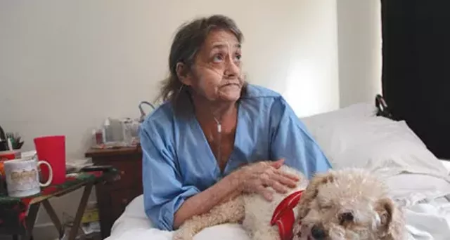 Linda Barger sat in bed in her Sherman Street apartment with her miniature dog, Bear, curled up by her side. There, over the intermittent hissing of the breathing tubes that feed her oxygen, she lamented the long list of problems with her place. The shoddily-repaired wall. The lack of lightbulbs in an overhead fixture she can’t reach.